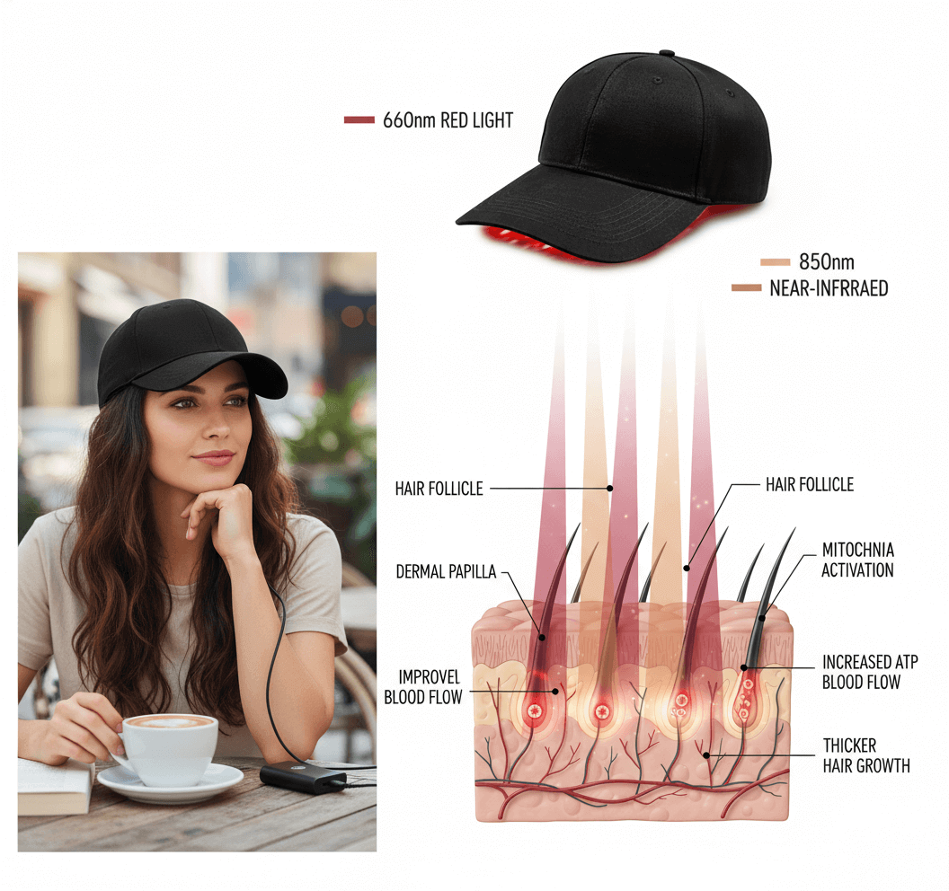 Boost your hair health with the Vilnason LED Hair Growth Cap! Featuring 96 high-quality LED lights with 660nm & 850nm red light therapy, this cap promotes hair regrowth, reduces hair loss, and supports scalp care. Enjoy faster hair growth, oil control, and even relief from headaches—all in a safe, CE-certified design. Perfect for convenient, at-home hair care.